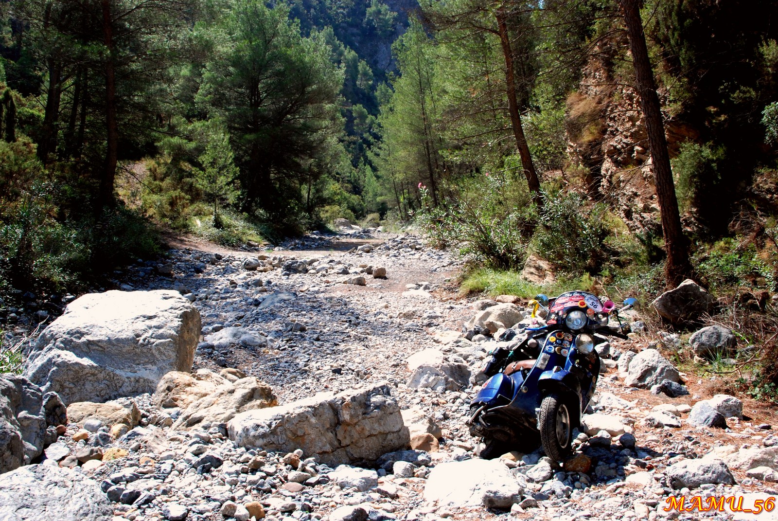 No salimos al alba como suelo hacer cuando no tengo un sitio en concreto donde hacer "unos" kilómetros, pero a esta hora de la mañana toda vía se notaba el fresco, y el bajón de las temperaturas era significante el cual se notaba sobretodo en los fuertes olores de pino y humedad que desprendía el lugar que elegí para ir calentando motores cerca del nacimiento del rio Llusena, un Camino Natural dentro de la Ruta dels Molins d´Aigua ,(a quien le guste caminar la recomiendo, precioso) la pista se fue haciendo dura y empedrada, pero el verdor y los olores que desprendían valía la pena estar en ese increíble entorno de paz... pero lo realmente duro empezaba a partir de ahora, con dificultad máxima sobre piedras y llevando el Río Lucena con su cauce seco como espectador sublime y bello para "mi locura", ¡¡mi objetivo¡¡, llegar a una cantera "creo que es el término de Chodos" en la que termina esta pista, y realmente llegue agotado y con el embrague de la Madrileña echando humo, pensé que la vuelta a Lucena seria mas difícil de lo que realmente fue (la experiencia de la ruta vista con anterioridad fue la clave para salir del lio) por que me quede sin zapatilla una vez más rota jejeje, con tranquilidad fuimos dejando atrás este entorno natural y precioso para volver de nuevo a la civilización, ¡mientras¡ mi cabeza dejaba paso a la imaginación y que esta volara sin rumbo fijo para subir puertos más allá de donde yo me pudiera imaginar.